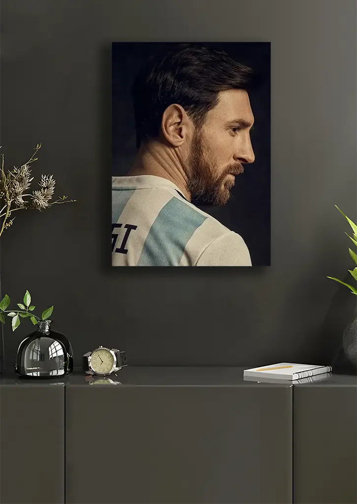 پوستر فلزی یا متال پوستر طرح مسی The GOAT ادای احترامی باشکوه به اسطوره‌ی بی‌رقیب دنیای فوتبال، لیونل مسی است. در این تصویر، مسی با نگاهی مصمم و وقار خاص خود به نمایش درآمده و واژه‌ی “The GOAT” — مخفف Greatest of All Time — معنای واقعی‌اش را در چهره و افتخارات او می‌یابد. چاپ درخشان روی فلز، ترکیب رنگ‌های طلایی و آبی، و جزئیات دقیق طراحی، جلوه‌ای لوکس و ماندگار به اثر می‌بخشد. این پوستر نه‌تنها زینت‌بخش اتاق هواداران فوتبال است، بلکه یادآور سال‌ها نبوغ، فروتنی و لحظات تکرارنشدنی مسی در زمین بازی است.