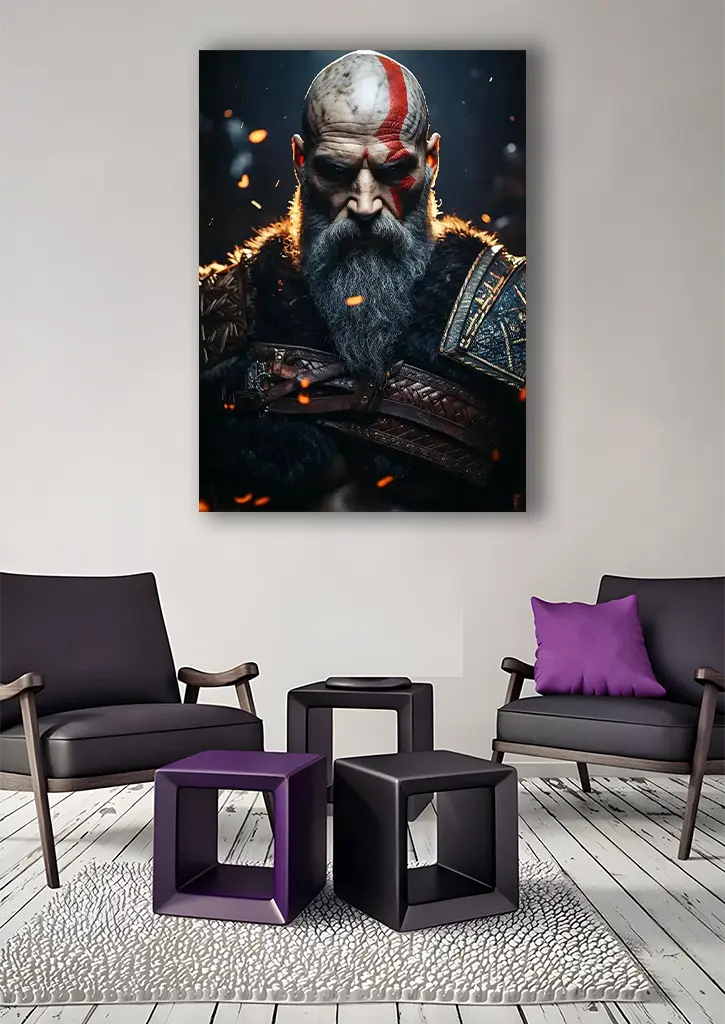 متال پوستر بازی God of War با طرح شخصیت کریتوس، تصویری حماسی و پرقدرت از این قهرمان افسانه‌ای و خشمگین دنیای خدایان یونان را به نمایش می‌گذارد. چاپ با کیفیت بالا و جنس فلزی پوستر، جزئیات عضلات، زره، سلاح‌ها و حالت خشم و تمرکز کریتوس را با وضوح و دقت بالا نشان می‌دهد و حس قدرت، انتقام و نبردهای بی‌رحمانه او را منتقل می‌کند. این پوستر، هیجان و ابهت دنیای God of War را به اتاق یا گیم‌روم شما می‌آورد و آن را به یک اثر هنری پویا و تاثیرگذار تبدیل می‌کند. انتخابی ایده‌آل برای طرفداران سری بازی‌های اکشن و اساطیری.