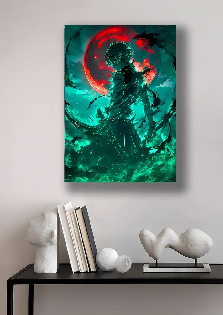 عکس متال پوستر انیمه شیطان‌کش (Kimetsu no Yaiba) با حال‌وهوایی پرانرژی و هیجان‌انگیز، شخصیت‌های اصلی و مبارزات پرشورشان را به زیبایی به تصویر می‌کشد. در این طرح، قهرمانان انیمه با شمشیرهای درخشان و حالت‌های نبرد پویا، در میان پس‌زمینه‌ای پر از رنگ و انرژی قرار دارند که حس شجاعت، اراده و ماجراجویی آن‌ها را منتقل می‌کند. جزئیات دقیق لباس‌ها، افکت‌های حرکتی و نورپردازی سینمایی، جلوه‌ای جذاب و چشم‌گیر به پوستر بخشیده‌اند. این متال پوستر انتخابی عالی برای طرفداران Kimetsu no Yaiba و علاقه‌مندان به دنیای انیمه‌های اکشن و پرهیجان است که می‌خواهند انرژی و هیبت قهرمانان را در فضای اتاق یا گیم‌روم خود زنده کنند.