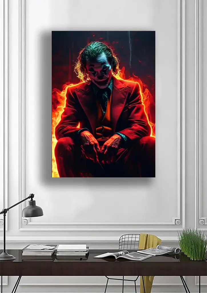متال پوستر طرح جوکر تصویری تاریک و پرانرژی از این شخصیت جنجالی و نمادین دنیای کمیک را به نمایش میگذارد. در این طرح، جوکر با لبخندی هولناک و نگاه نافذ در میان پسزمینهای پر از رنگهای تیره و افکتهای نوری و نقاشیگونه دیده میشود که حس جنون، زیرکی و تهدید او را به بیننده منتقل میکند. جزئیات دقیق چهره، سایهها و حالتهای حرکتی، جلوهای سینمایی و جذاب به پوستر بخشیدهاند. این متال پوستر انتخابی عالی برای طرفداران جوکر و دوستداران آثار تاریک و تاثیرگذار است.