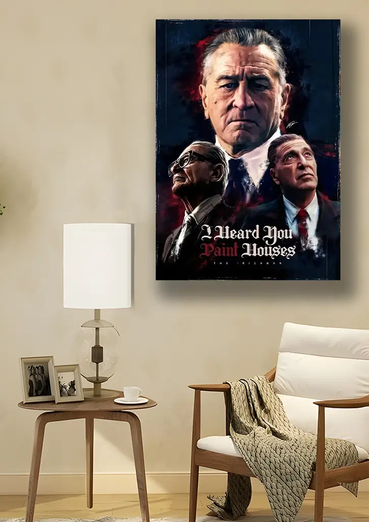 متال پوستر طرح فیلم The Irishman تصویری تاریک و سینمایی از این شاهکار مارتین اسکورسیزی را به نمایش میگذارد. در این طرح، شخصیتهای اصلی با حالات جدی و پسزمینهای مهآلود و سایهدار دیده میشوند، که حس تنش، رمزآلودگی و عمق داستان جنایی فیلم را منتقل میکند. جزئیات دقیق چهرهها، لباسها و افکتهای نورپردازی، جلوهای واقعی و سینمایی به پوستر بخشیدهاند. این متال پوستر انتخابی عالی برای طرفداران The Irishman و علاقهمندان به آثار جنایی و درامهای پرجزئیات است.