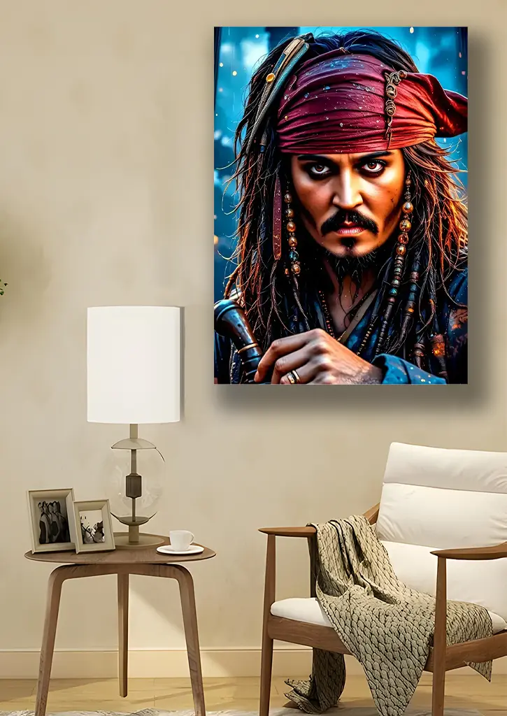 متال پوستر سینمایی Pirates of the Caribbean با طرح Jack Sparrow تصویری پرانرژی و ماجراجویانه از این دزد دریایی نمادین را به نمایش میگذارد. در این طرح، جک اسپارو با لباس و کلاه معروفش و شمشیری در دست، در میان پسزمینهای دریایی و طوفانی دیده میشود که حس جسارت، طنز و ماجراجویی بیپایان او را منتقل میکند. جزئیات دقیق چهره، لباس و افکتهای نورپردازی، جلوهای سینمایی و واقعگرایانه به پوستر بخشیدهاند. این متال پوستر انتخابی عالی برای طرفداران Pirates of the Caribbean و علاقهمندان به آثار ماجراجویانه و سینمایی پرجزئیات است.