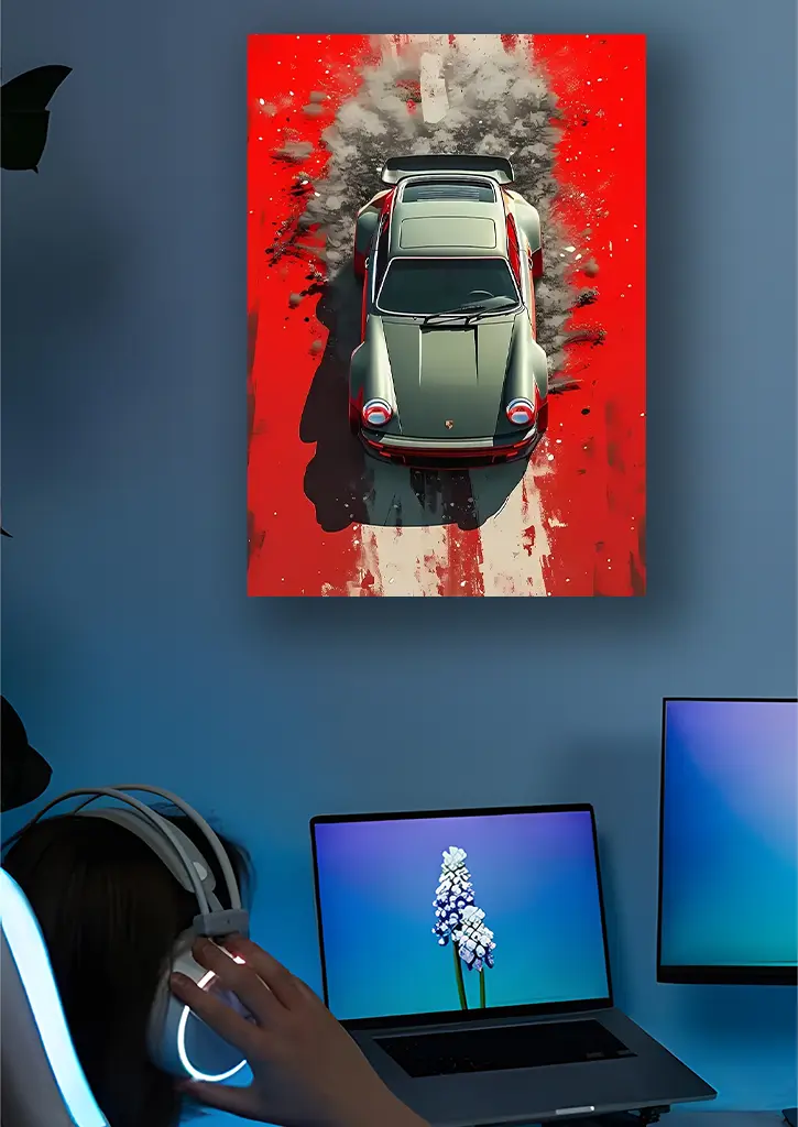 متال پوستر طرح Porsche 911 یک اثر خیره‌کننده برای عاشقان دنیای خودرو است. در این پوستر، خطوط کلاسیک و دینامیک بدنه پورشه 911 با دقت بالا و جزئیات دقیق به تصویر کشیده شده‌اند، به‌طوری که حس سرعت و قدرت این سوپرکار افسانه‌ای به بیننده منتقل می‌شود. رنگ‌های زنده و متالیک پوستر، جذابیت بصری آن را دوچندان کرده و باعث می‌شود این اثر نه تنها برای دکوراسیون اتاق، بلکه برای کلکسیونرهای خودرو یک انتخاب بی‌نظیر باشد. این متال پوستر ترکیبی از استایل مدرن و روح کلاسیک پورشه را به شکلی بی‌نظیر به نمایش می‌گذارد.