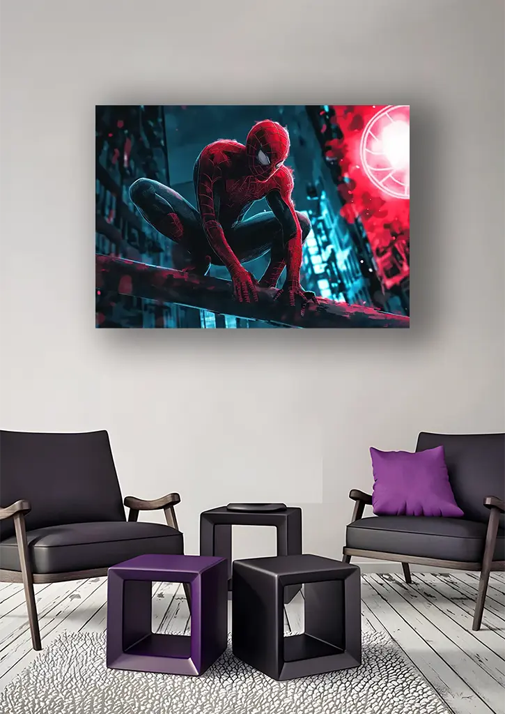 متال پوستر طرح اسپایدرمن یک اثر پرانرژی و هیجان‌انگیز برای طرفداران دنیای مارول است. در این پوستر، اسپایدرمن در حال پرواز و تاب خوردن بین آسمان‌خراش‌ها به تصویر کشیده شده و حس ماجراجویی و سرعت او را به خوبی منتقل می‌کند. رنگ‌های پرجنب‌وجوش و جزئیات دقیق لباس و تارهای عنکبوت، جذابیت بصری پوستر را دوچندان کرده و باعث می‌شود این اثر نه تنها یک دکور زیبا برای اتاق باشد، بلکه برای کلکسیونرهای شخصیت‌های کمیک نیز انتخابی بی‌نظیر به حساب بیاید. این متال پوستر تلفیقی از هیجان، هنر و شخصیت نمادین اسپایدرمن را به شکلی بی‌نظیر نمایش می‌دهد.