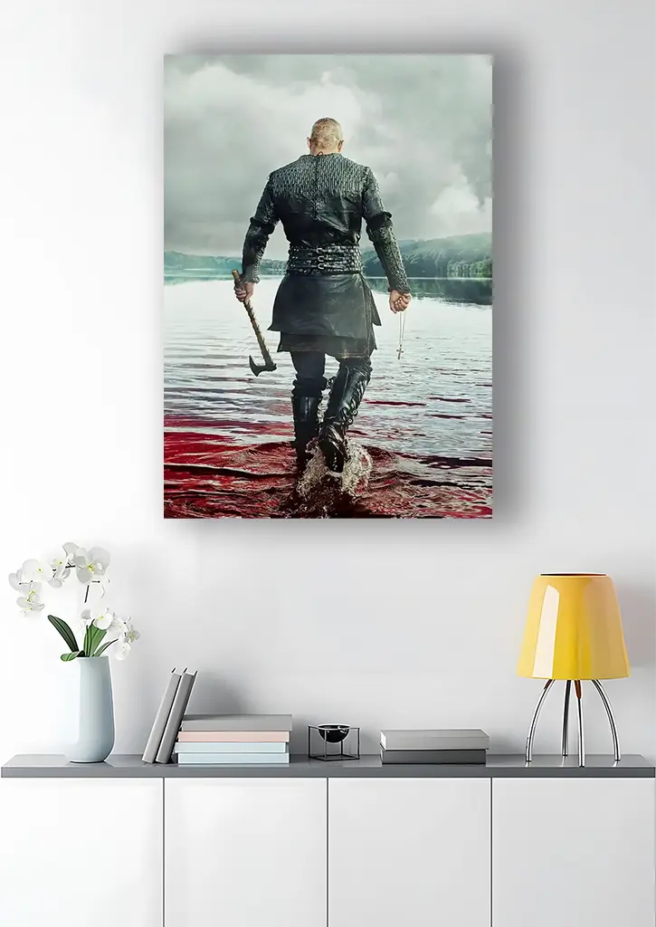 متال پوستر سریال وایکینگز (Vikings) با طرح رگنار لودبروک (Ragnar Lothbrok) یک اثر حماسی و جذاب است که قدرت و شجاعت این شخصیت افسانهای را به تصویر میکشد. در این پوستر، رگنار با زره جنگی و شمشیر یا تبر خود در حال آماده شدن برای نبرد نمایش داده شده و جزئیات دقیق چهره، لباس و پسزمینه تاریک و پرتنش، حس اقتدار و ماجراجویی او را به خوبی منتقل میکند. ترکیب رنگهای تیره با نورپردازیهای متمرکز، جلوهای سینمایی و قدرتمند به پوستر بخشیده و آن را به انتخابی ایدهآل برای علاقهمندان به سریال و دکوراسیون دیوارهای الهامبخش تبدیل کرده است.