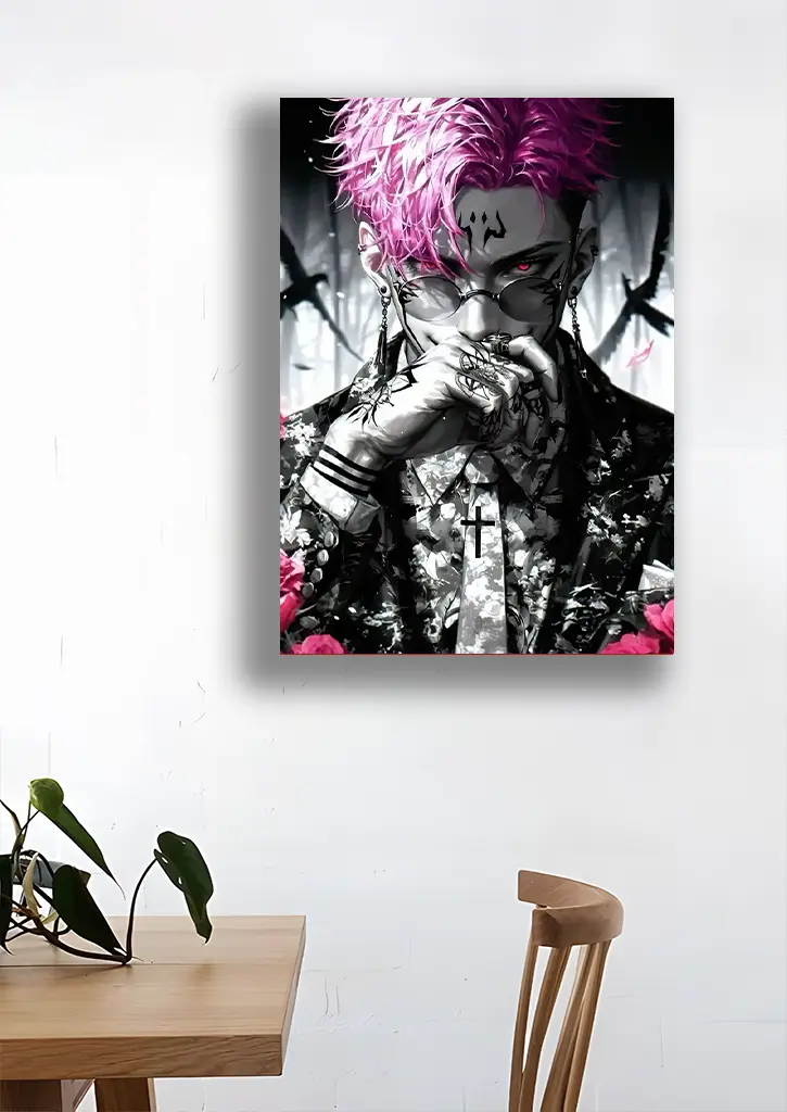 متال پوستر انیمه جوجوتسو کایزن طرح گوجو با نمایش کاریزما و قدرت بیحدومرز استاد ساتورو گوجو، جلوهای چشمگیر و انرژیبخش به فضا میدهد. در این طرح، چهره آرام اما مرموز گوجو در کنار چشمان درخشان یا چشمبند معروفش، حس برتری و اعتمادبهنفس مطلق او را بهخوبی منتقل میکند. رنگهای درخشان آبی و بنفش، جلوهای جادویی و فراواقعی ایجاد کرده و قدرت تکنیکهای او را یادآور میشوند. این متال پوستر انتخابی عالی برای طرفداران جوجوتسو کایزن است و هر محیطی را به فضایی پرانرژی و مدرن تبدیل میکند.