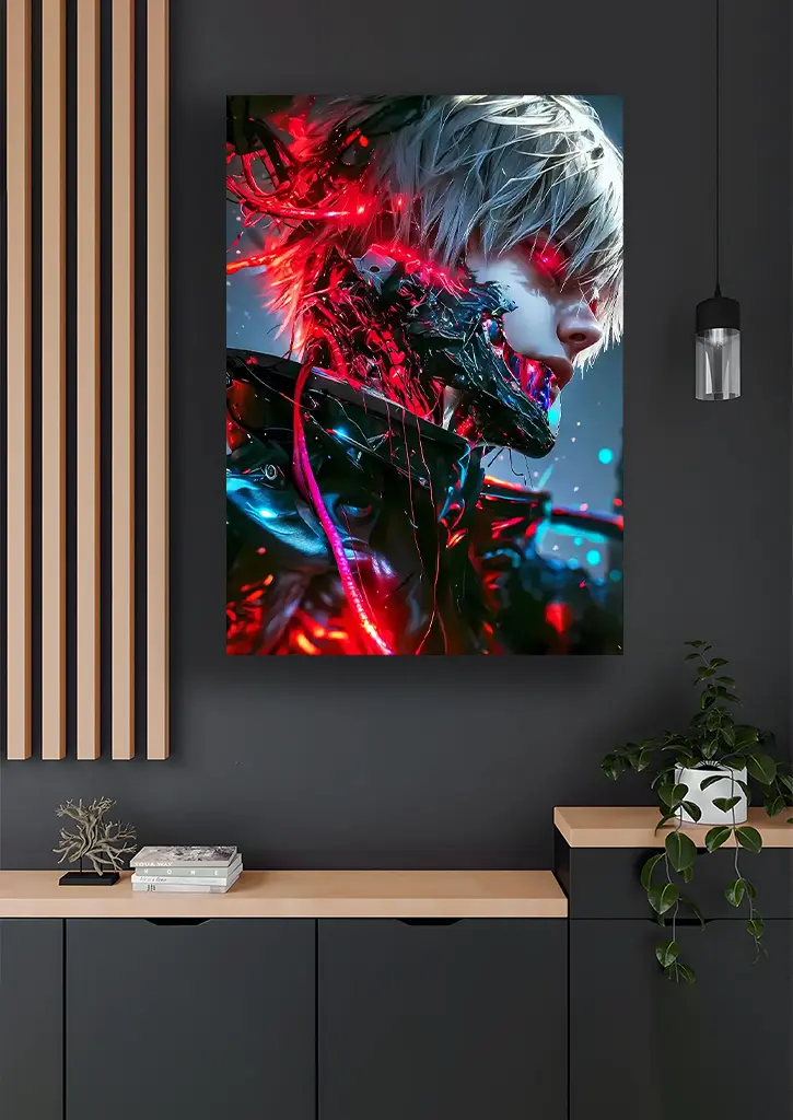 متال پوستر انیمه Tokyo Ghoul طرح Ken Kaneki تصویری تاریک، عمیق و پرتنش از شخصیت پیچیده و محبوب این انیمه را به نمایش میگذارد. در این طرح، کانکی با ماسک معروفش، چشم قرمز درخشان و حالت چهرهای پر از خشم و رنج، تضاد درونیاش میان انسان و غول را بهخوبی منتقل میکند. سایههای سنگین و رنگهای تیره فضای پوستر را مرموز و قدرتمند کردهاند و درخشش سطح فلزی باعث میشود جزئیات ماسک، خطوط چهره و انرژی تهدیدکننده او برجستهتر دیده شوند. این پوستر انتخابی عالی برای طرفداران Tokyo Ghoul است که میخواهند تصویری احساسی، هنری و تاثیرگذار از کانکی را در دکور خود داشته باشند.