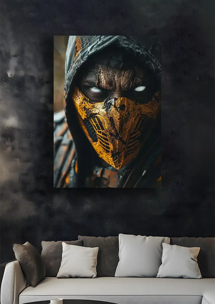 متال پوستر بازی Mortal Kombat طرح اسکورپیون تصویری خیرهکننده و پرقدرت از یکی از نمادینترین مبارزان این سری ارائه میدهد. در این طرح، اسکورپیون با لباس زرد و ماسک مرموزش، در میان شعلهها و افکتهای آتشین دیده میشود و حس انتقامجویی، قدرت و خشونت بیرحمانه او را منتقل میکند. بافت فلزی پوستر باعث میشود جزئیات زره، خطوط لباس و شعلههای اطرافش برجستهتر و سهبعدی دیده شوند و تصویر جلوهای سینمایی و جذاب پیدا کند. این پوستر انتخابی بینظیر برای طرفداران Mortal Kombat است که میخواهند فضایی هیجانانگیز، قدرتمند و پر انرژی در دکور خود ایجاد کنند.