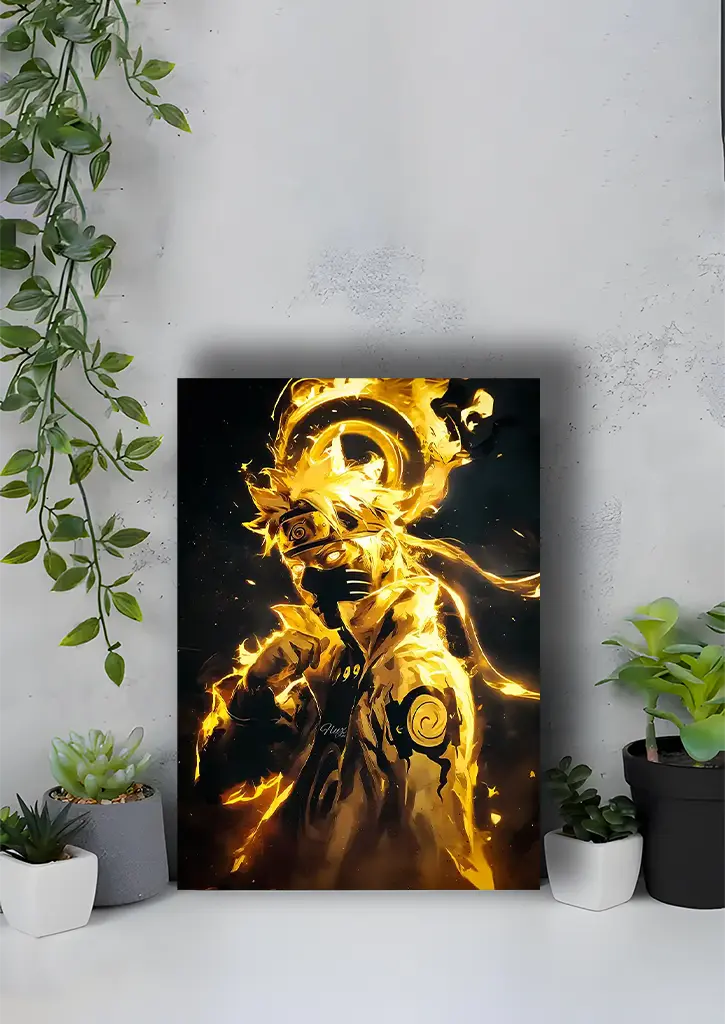متال پوستر طرح انیمه ناروتو تصویری پرانرژی و هیجانانگیز از دنیای نینجاها ارائه میدهد، جایی که ناروتو اوزومکی با نگاه مصمم و حالت جنگجویانه خود در مرکز توجه قرار دارد. در این طرح، رنگهای نارنجی و آبی لباس او در کنار پسزمینه پویا و افکتهای انرژی، حس شجاعت، اراده و عزم راسخ ناروتو را بهخوبی منتقل میکنند. بافت فلزی پوستر باعث میشود جزئیات مو، لباس و حرکات پویا برجستهتر و سهبعدی دیده شوند و جلوهای مدرن و چشمگیر ایجاد کنند. این پوستر انتخابی عالی برای طرفداران ناروتو است که میخواهند انرژی، هیجان و روحیه قهرمانانه این شخصیت محبوب را به دکور خود اضافه کنند.