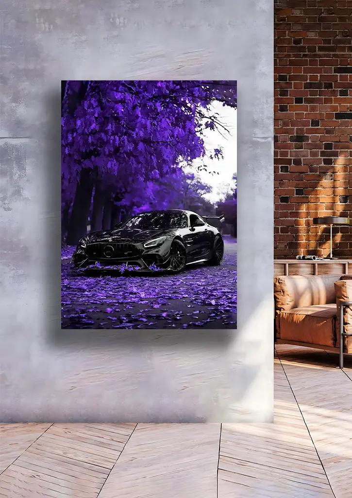 متال پوستر طرح ماشین Mercedes-Benz AMG GT تصویری قدرتمند، لوکس و پرانرژی از این خودروی اسپرت ارائه میدهد. در این طرح، AMG GT با خطوط عضلانی بدنه، چراغهای روشن و زاویهای جذاب دیده میشود که حس سرعت، قدرت و طراحی بینظیر خودرو را بهخوبی منتقل میکند. پسزمینه با افکتهای نورپردازی پویا و سایههای دقیق، هیجان و حرکت خودرو را برجسته کرده و بافت فلزی باعث میشود جزئیات بدنه، رینگها و خطوط طراحی به شکل سهبعدی و چشمگیر دیده شوند. این پوستر انتخابی عالی برای علاقهمندان به خودرو است که میخواهند فضایی لوکس، مدرن و پرقدرت به دکور خود اضافه کنند.