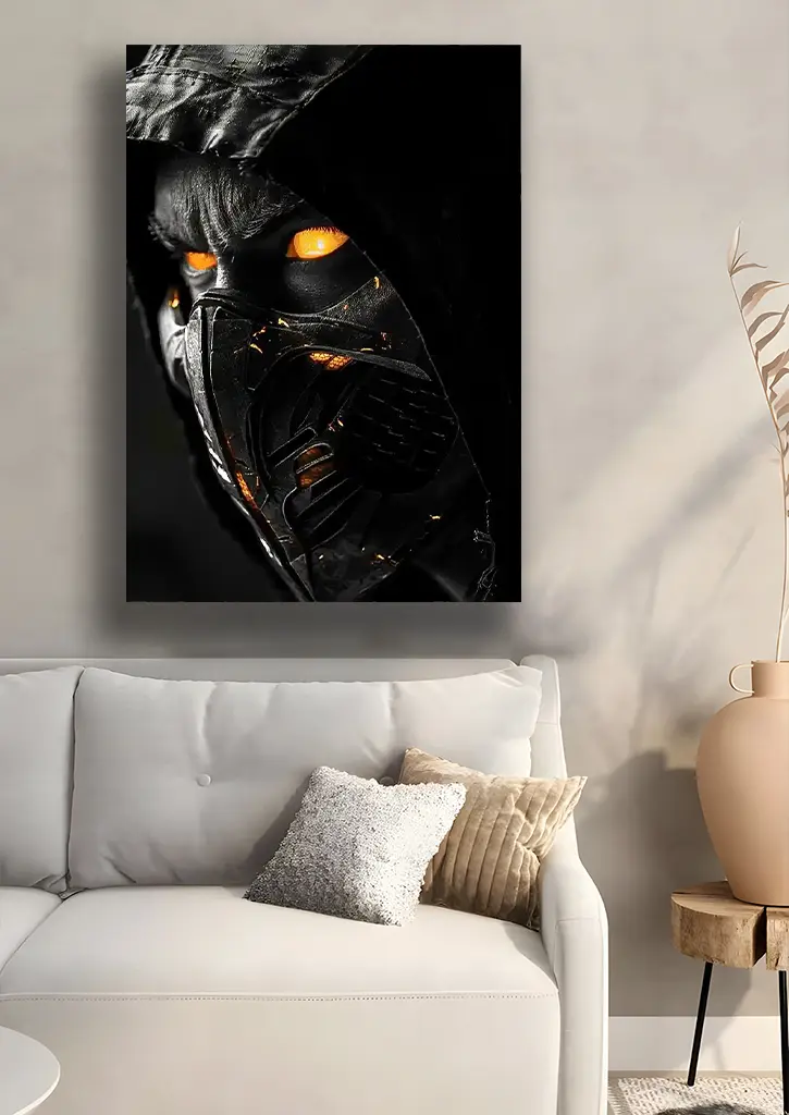 متال پوستر بازی Mortal Kombat طرح اسکورپیون تصویری هیجانانگیز، قدرتمند و خشن از یکی از نمادینترین مبارزان سری ارائه میدهد. در این طرح، اسکورپیون با لباس زرد کلاسیک و ماسک معروفش در حالت آمادهبهجنگ دیده میشود که حس سرعت، مهارت رزمی و خونسردی او را بهخوبی منتقل میکند. پسزمینه با افکتهای آتش، دود و نورپردازی پویا، جو تهدیدآمیز و اکشن صحنه را برجسته کرده و بافت فلزی باعث میشود جزئیات لباس، خطوط حرکتی و افکتهای انفجاری به شکل سهبعدی و چشمگیر دیده شوند. این پوستر انتخابی عالی برای طرفداران Mortal Kombat است که میخواهند فضایی پرقدرت، هیجانانگیز و پرانرژی به دکور خود اضافه کنند.