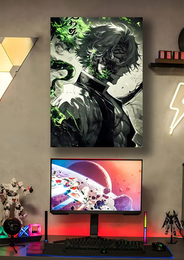 متال پوستر انیمه شیطان‌کش طرح Sanemi Shinazugawa با نمایش قدرت، سرسختی و روحیه جنگجویانه سانمی، فضایی پرانرژی و هیجان‌انگیز ایجاد می‌کند. در این طراحی، سانمی با چهره‌ای مصمم و نگاه نافذ خود، در حال آماده شدن برای نبرد نشان داده شده و جزئیات زخم‌ها، سلاح و حالت حرکتی او، حس خطر و مهارت بالای شخصیت را به بیننده منتقل می‌کند. رنگ‌بندی پوستر، با ترکیبی از سایه‌های تیره و نورهای برجسته، حس عمق و حرکت را افزایش داده و سطح براق متال باعث می‌شود جزئیات با وضوح و جذابیت بیشتری دیده شوند. این پوستر انتخابی عالی برای طرفداران شیطان‌کش و کسانی است که دنبال یک اثر قدرتمند، پرانرژی و با شخصیت قوی برای دکور اتاق یا محل کار خود هستند.