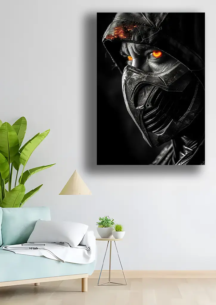 متال پوستر بازی Mortal Kombat طرح اسکورپیون نمایی قدرتمند و پرجنب‌وجوش از محبوب‌ترین نینجای مجموعه را نشان می‌دهد؛ جایی که اسکورپیون با ماسک طلایی، ژست جنگی تهاجمی و پس‌زمینه‌ای پوشیده از شعله‌ها، حس خشم و تمرکز را به اوج می‌رساند. انعکاس نور روی سطح فلزی پوستر، جلوه آتش و جزئیات لباس او را برجسته‌تر می‌کند و تصویری کاملاً سینمایی می‌سازد. این پوستر انرژی، هیجان و روح مبارزه‌ای اسکورپیون را به زیبایی منتقل کرده و انتخابی عالی برای هر طرفدار Mortal Kombat و دکور گیمینگ است.