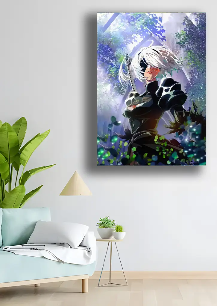متال پوستر طرح بازی Nier: Automata تصویری باشکوه و احساسی از دنیای ویران‌شده و آینده‌نگر این بازی را به نمایش می‌گذارد؛ جایی که اندرویدهای جنگجو برای بقای انسانیت می‌جنگند. در این پوستر، حضور جذاب شخصیت‌هایی مانند 2B با شمشیر نمادینش، در فضایی پوشیده از غبار، نورهای سرد و سازه‌های تخریب‌شده، حس ترکیبی از قدرت، غم و زیبایی را منتقل می‌کند. چاپ این اثر روی متال باعث شده جزئیات لباس، درخشش تیغه و تضاد میان نور و سایه چشم‌نوازتر از همیشه دیده شود و آن را به انتخابی فوق‌العاده برای هر طرفدار دنیای فلسفی و هنری Nier: Automata تبدیل کند.
