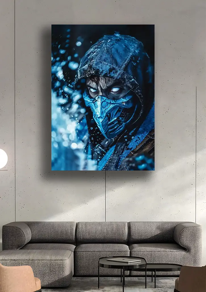 متال پوستر بازی Mortal Kombat طرح سابزیرو با نمایش شخصیت افسانهای و سردسیر سابزیرو، فضایی هیجانانگیز و مرموز ایجاد میکند. در این طراحی، سابزیرو با لباس آبی و ماسک معروفش در حال آماده شدن برای نبرد به تصویر کشیده شده و افکتهای یخی اطراف او، حس سرما، قدرت و مهارت بالای او را منتقل میکنند. رنگبندی سرد همراه با نورپردازی پرکنتراست و سطح براق متال باعث میشود جزئیات زره، حرکات پویا و افکتهای یخ با وضوح و جذابیت بیشتری دیده شوند. این پوستر انتخابی عالی برای طرفداران Mortal Kombat و کسانی است که دنبال یک اثر قدرتمند، هیجانانگیز و چشمگیر برای دکور اتاق یا محل بازی خود هستند.