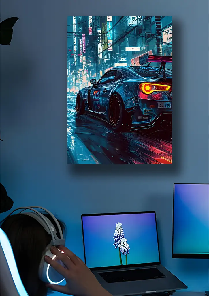 این متال پوستر با طرح خودروی تویوتا GT86، ظرافت و هیجان رانندگی اسپرت را با جزئیات دقیق و طراحی پویا به نمایش می‌گذارد. خطوط بدنه خودرو، انعکاس نور و رنگ‌بندی جذاب، حس سرعت و قدرت این خودروی محبوب را به بیننده منتقل می‌کند. کیفیت بالای متال باعث دوام و ماندگاری طولانی‌مدت پوستر می‌شود و جلوه‌ای مدرن و اسپرت به دکور اتاق، گاراژ یا محل کار اضافه می‌کند. این پوستر انتخابی ایده‌آل برای علاقه‌مندان به خودروهای اسپرت و کلکسیونرهایی است که به دنبال یک اثر هنری متفاوت و پرانرژی هستند.