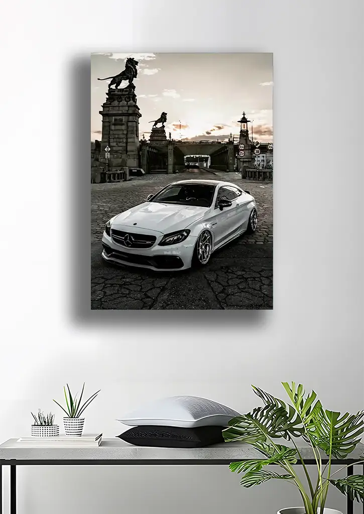 این متال پوستر با طرح خودروی Mercedes-Benz C63، ترکیبی از قدرت، لوکس بودن و طراحی اسپرت این خودرو را با جزئیات خیره‌کننده به تصویر می‌کشد. خطوط بدنه، جلوپنجره شاخص و انعکاس نور روی سطح خودرو، حس سرعت و هیجان واقعی رانندگی را به بیننده منتقل می‌کند. کیفیت بالای متال باعث دوام و ماندگاری طولانی‌مدت پوستر شده و جلوه‌ای مدرن و جذاب به دکور اتاق، گاراژ یا محل کار اضافه می‌کند. این پوستر انتخابی ایده‌آل برای علاقه‌مندان به خودروهای اسپرت و لوکس و کلکسیونرهایی است که می‌خواهند یک اثر هنری متفاوت و پرانرژی را به فضای خود اضافه کنند.